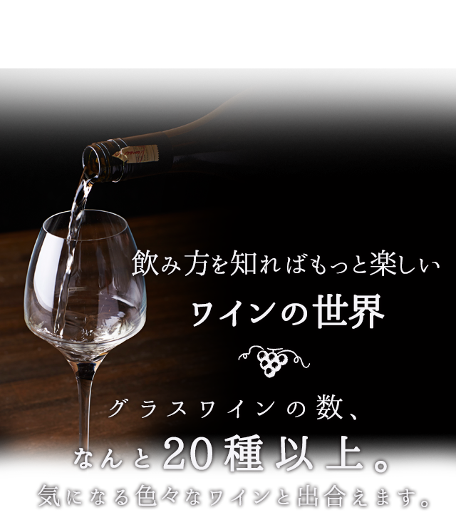 ワインの世界へはまずはグラスで。 ぴったりなワインを見つけてください。